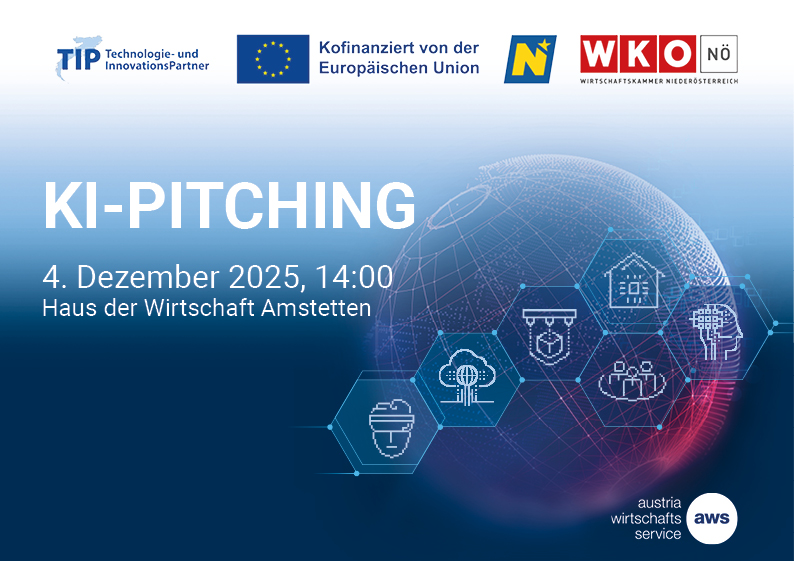 Zeigen Sie, was Ihre KI kann! Bewerben Sie sich bis 9. November für das KI-Pitching Amstetten 2025 und präsentieren Sie Ihre Innovation vor Fachpublikum.