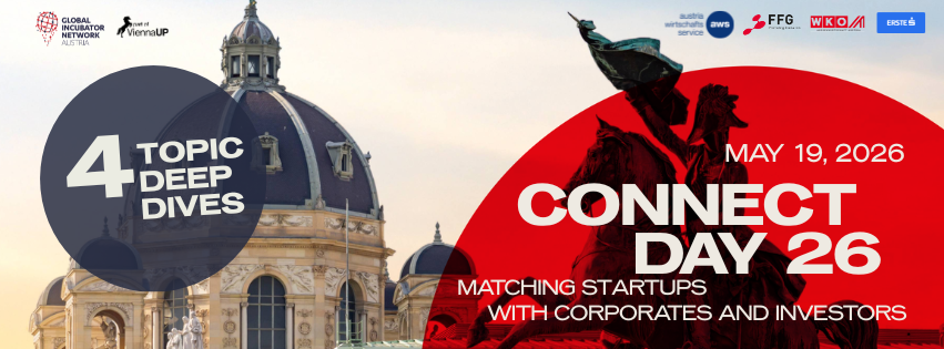 Am 19. Mai 2026 ist es wieder soweit: Der Connect Day 26 bringt hochqualitatives Matchmaking nach Wien und vernetzt mit innovativen Startups, führenden Unternehmen, Investor:innen und Akteur:innen des österreichischen und internationalen Innovationsökosystem.