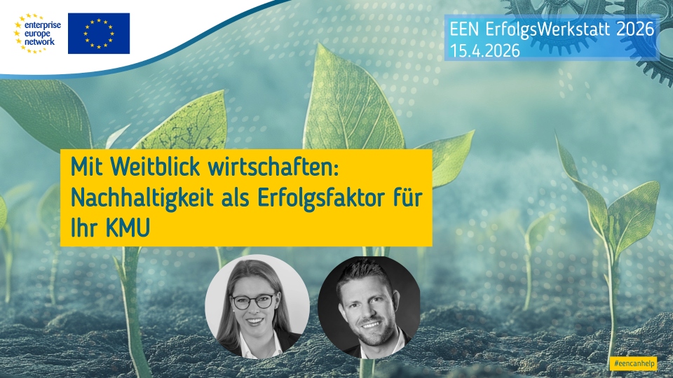Haben Sie sich schon gefragt, wie Sie Ihre Wettbewerbsfähigkeit nachhaltig steigern und neue internationale Märkte erschließen können? In unserer kostenlosen Webinar-Reihe im September und Oktober 2025 erfahren österreichische kleine und mittlere Unternehmen (KMUs), wie sie die umfassenden Services des Enterprise Europe Network Austria gezielt für ihr Wachstum und ihre Expansion einsetzen können. Unsere praxisnahen Webinare bieten wertvolle Einblicke und konkrete Handlungsempfehlungen für Ihren Geschäftserfolg. Melden Sie sich an und entdecken Sie, wie Sie von unserem Netzwerk und den maßgeschneiderten Angeboten profitieren können!